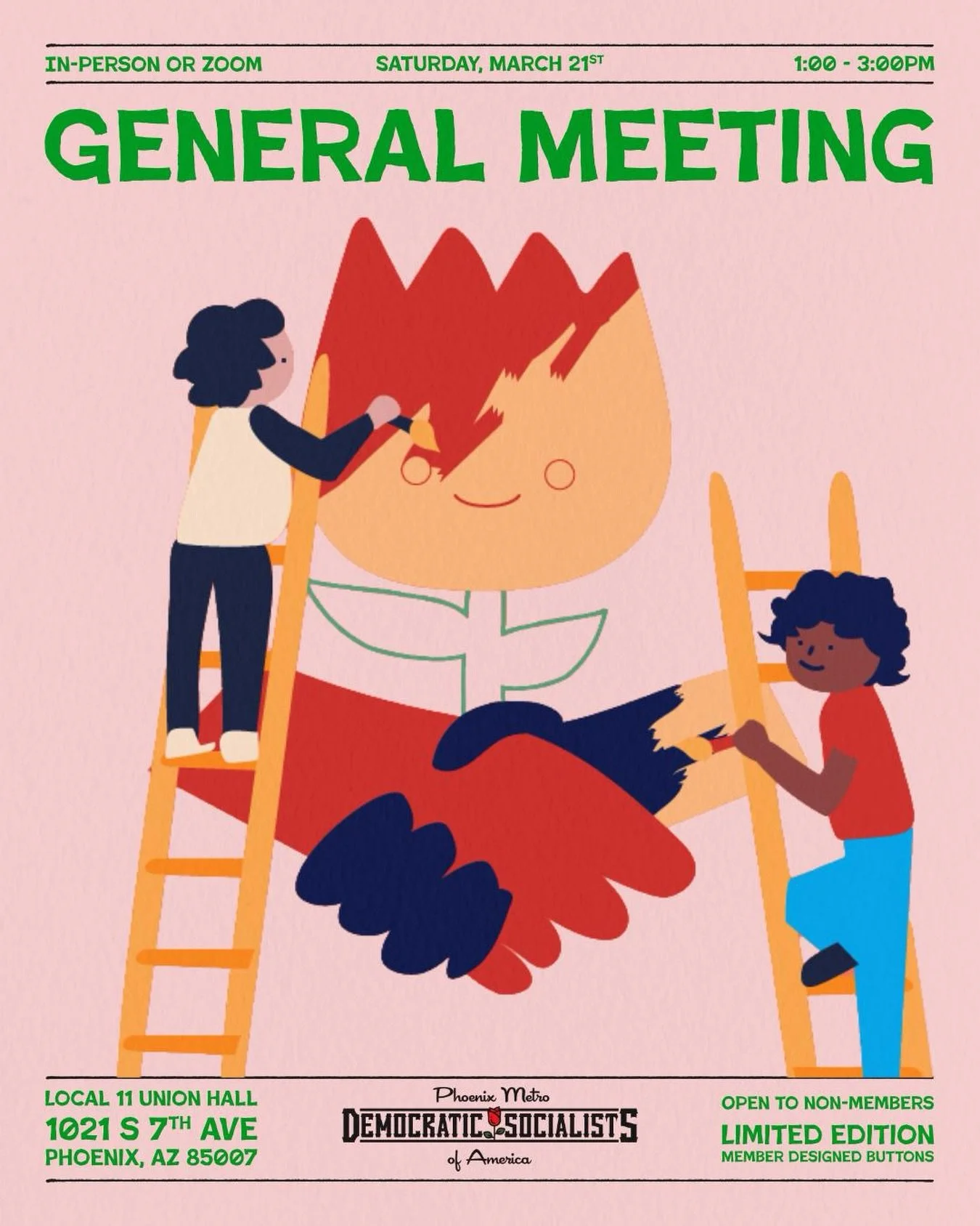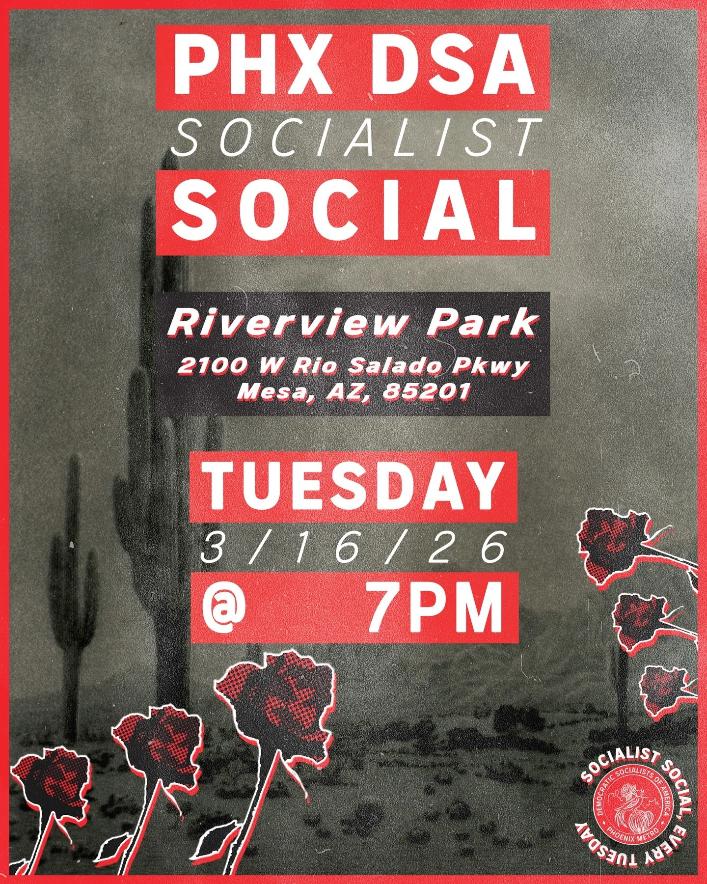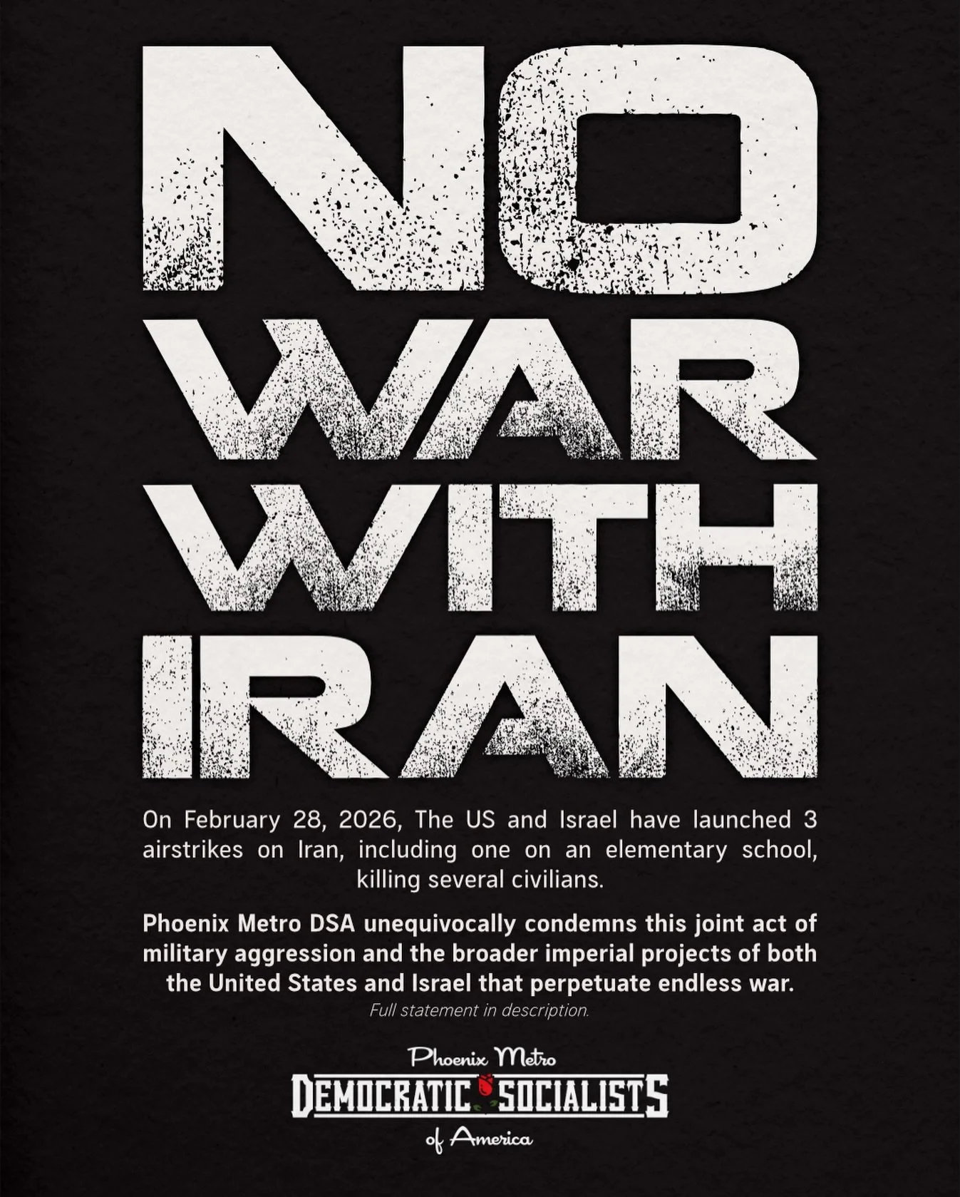 Phoenix-Metro DSA is fighting for a better future with equitable and sustainable resource distribution, gender and racial equality, and liberation from all forms of oppression.