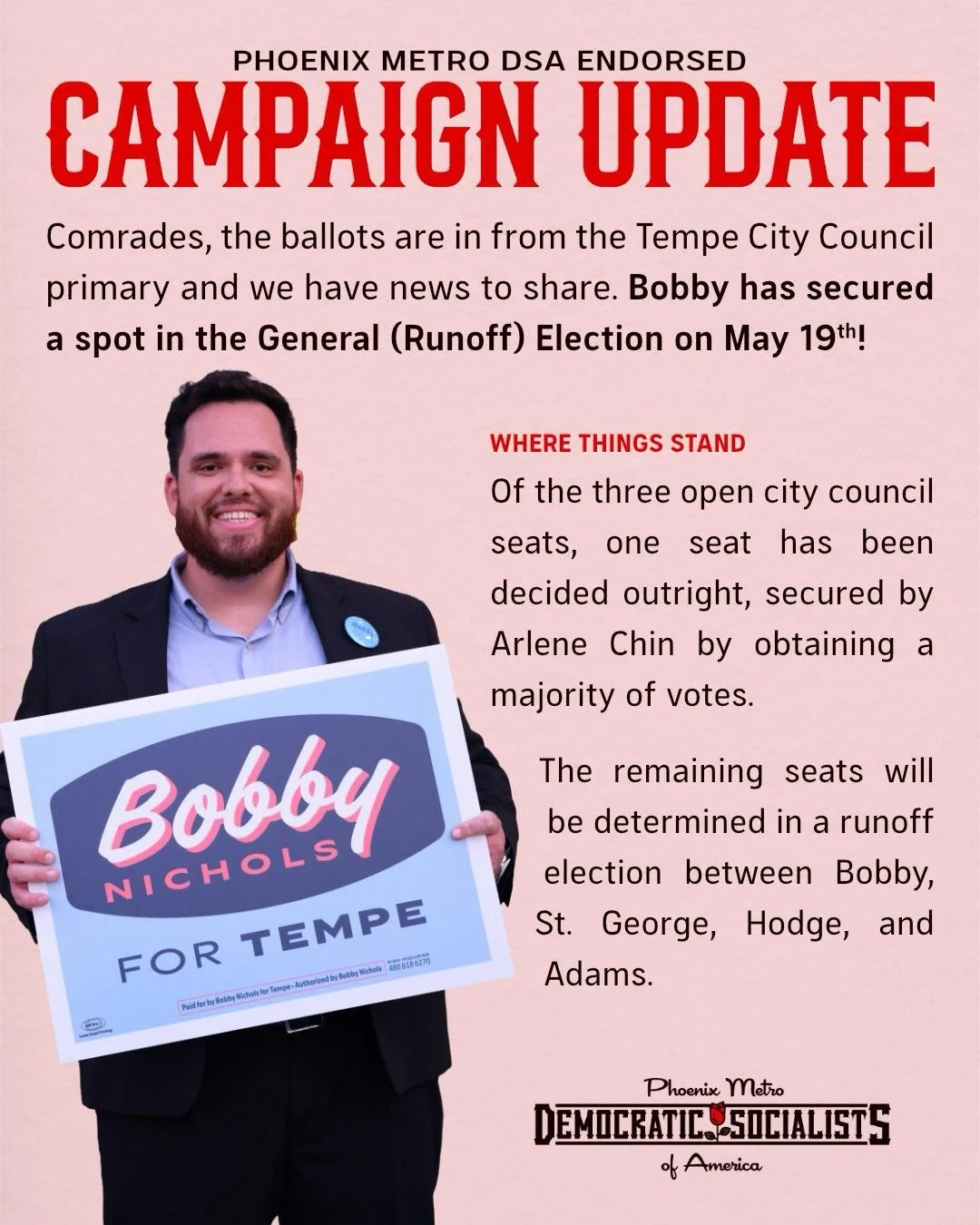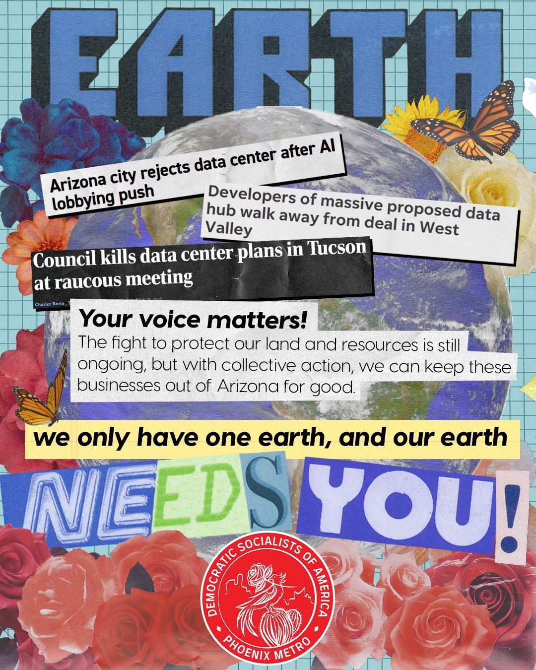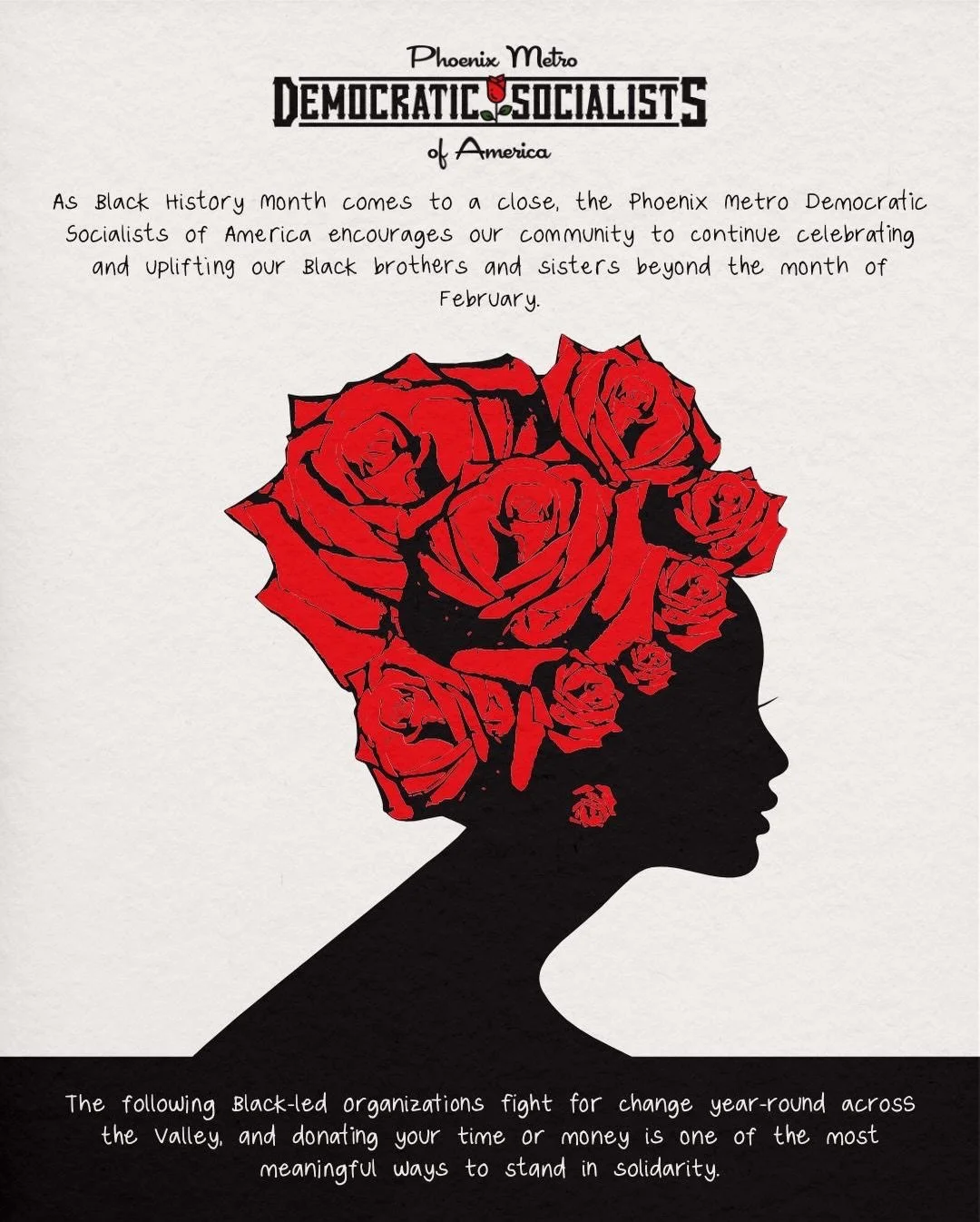 Phoenix-Metro DSA is fighting for a better future with equitable and sustainable resource distribution, gender and racial equality, and liberation from all forms of oppression.
